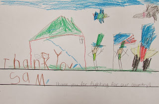 We made cards for our heroes this week! The kids loved making them. Here were some cute ones from the first day. They enjoyed it so much, I kept out the supplies during Free Choice all week. I have quite a package to send out!